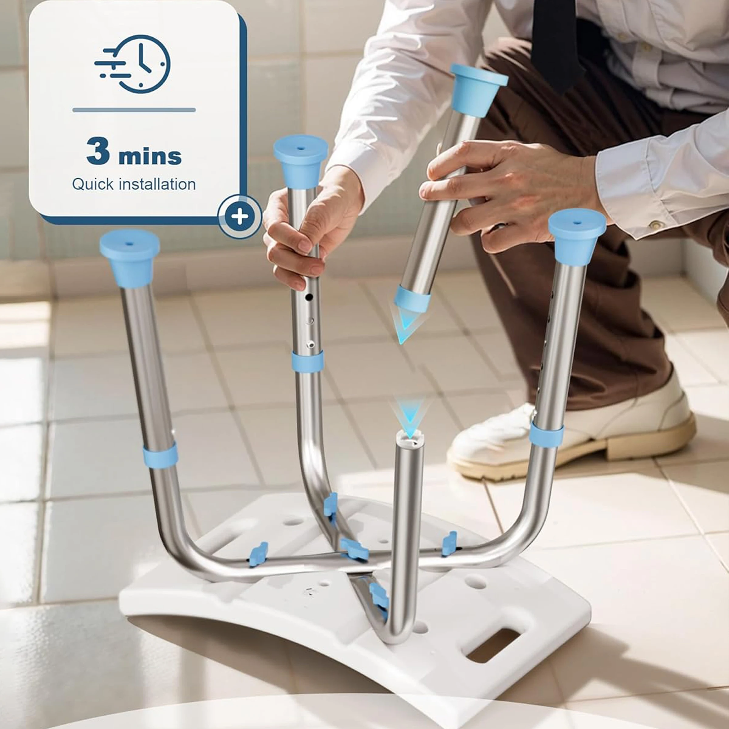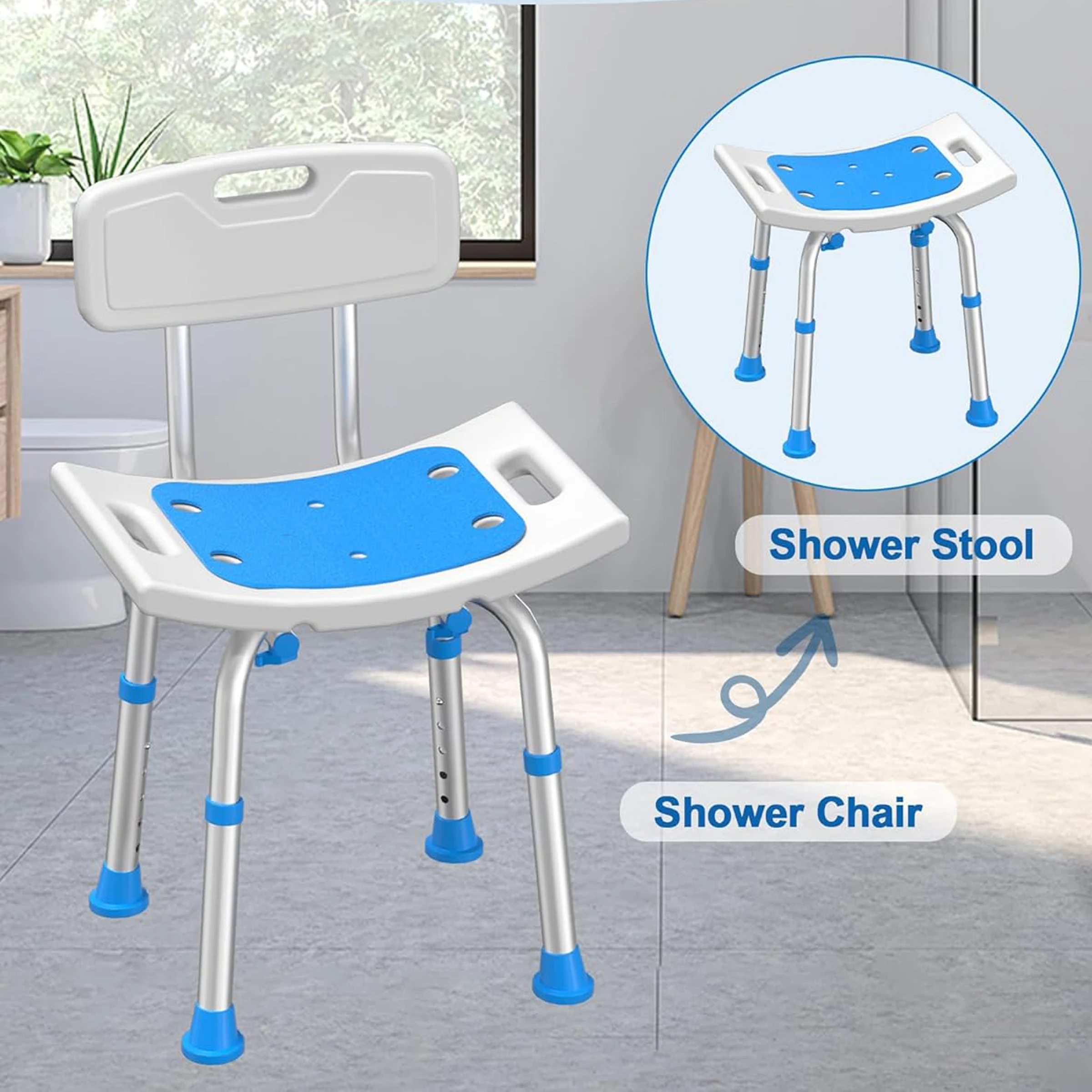 Adjustable Shower Chair with Removable Back for Bathroom Safety