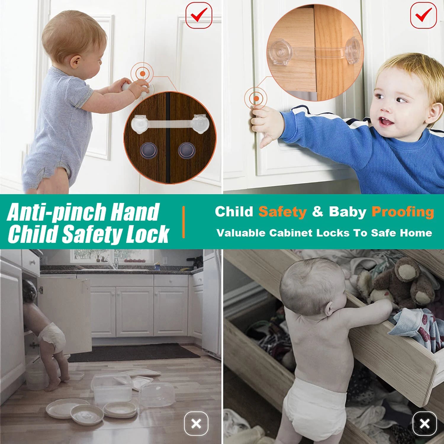 Anti-Pinch Baby Safety Cabinet Locks – Clear Childproof Door, Drawer & Fridge Closures (1–8 PCS)